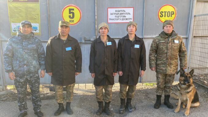 В составе дежурного подразделения находились начальник отделения, сержант 3-го класса Султан Турдалиев, старший специалист-инструктор ефрейтор Ануар Шынболат, а также рядовые бойцы Әди-Султан Толенберген и Әділет Нурланулы. В ходе осмотра они обнаружили в одном из мешков с цементом скрытые посторонние предметы и незамедлительно приступили к их проверке.