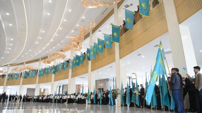 Мерекелік бағдарламаның шарықтау шегі — Майра Мұхамедқызы мен қала өнерпаздарының «Ата заң бұл» әнін көпшілікпен бірге орындауы болды. Ән орындалған сәтте залда мемлекеттік тулар желбіреп, қатысушылар ел болашағына деген сенімдерін білдірді.