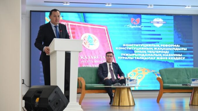Университеттің аға оқытушысы, құқықтанушы Ермек Төленұлы Бекбосынов өз сөзінде Жаңа Конституцияның 3-бабына ерекше тоқталып, адами капиталды дамыту мәселесін көтерді. Оның айтуынша, адами капитал – тек кәсіби біліктілік емес, ең алдымен адамгершілік пен ізгілік қасиеттердің жиынтығы.
